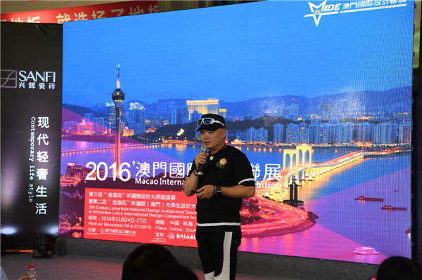 2016'澳門國際設計聯展珠海啟動儀式上,符軍會長號召珠澳兩地設計師團結起來,發揮地緣優勢,加強兩地行業之間的合作互動。