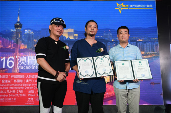 符軍會長和黃墨理事為2016'澳門國際設計聯展“推廣大使”、“戰略合作聯盟”協會、“戰略合作品牌”企業、院校指導導師、設計師代表、支持單位頒發證書。